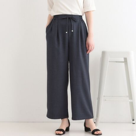 ゆったりとした脚のラインを拾いにくいワイドシルエットです。