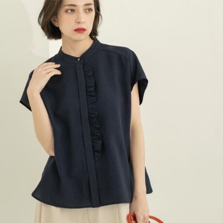リネンライクフロントフリルブラウス【洗濯機洗い可吸水速乾接触冷感】