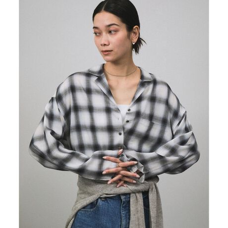 カジュアルなオンブレチェックも上品な素材感や、オープンカラーのデザインにより抜け感や女性らしさを演出。