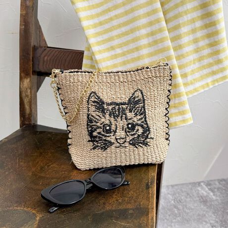 ・キャット刺繍がポイントのアバカショルダーバッグです