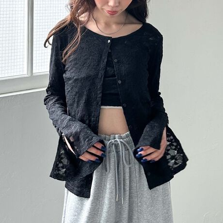 重ねても、単品でレースカーデとして着こなしても可愛く着て頂けます。