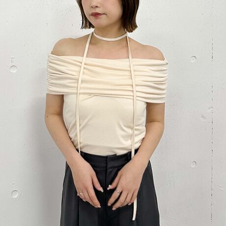 トレンドムードたっぷりな折り返しデザインのオフショルカットソー。