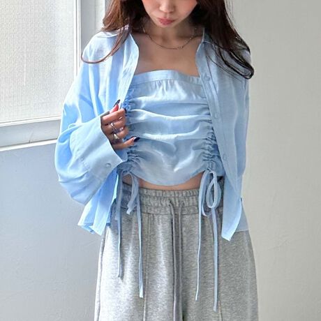 ドロスト紐を引くことで好みの形に変えて着こなせます。