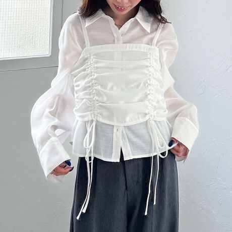 ドロスト紐を引くことで好みの形に変えて着こなせます。