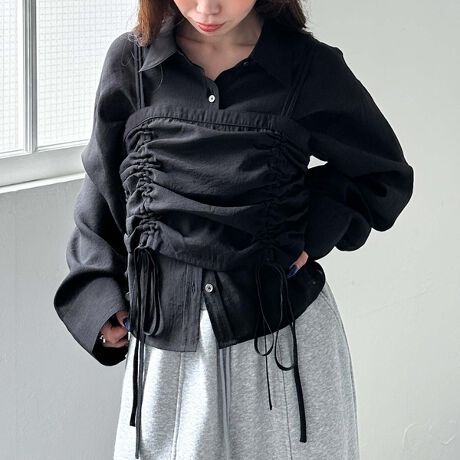 ドロスト紐を引くことで好みの形に変えて着こなせます。