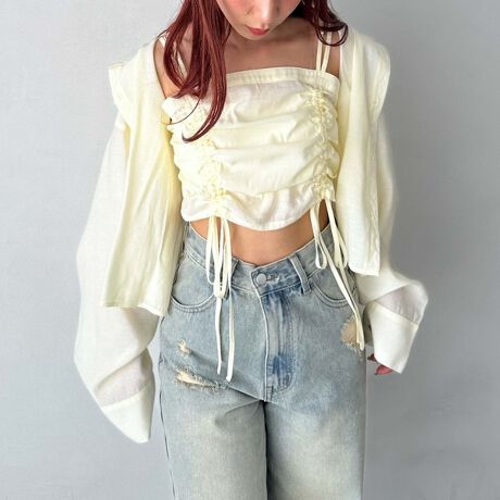 ドロスト紐を引くことで好みの形に変えて着こなせます。
