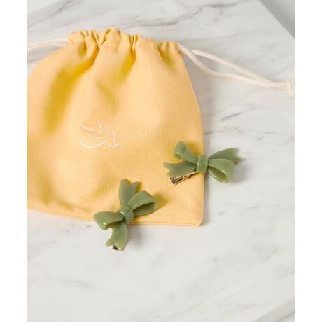 小さいリボン型のクリップは、挟むだけで簡単に髪の毛をしっかり止めることができて、付け方によってさりげなく可愛くも華やかにもなります。素材がカジュアルなのでスポーティなスタイルのポイントにもおすすめです。・収納巾着袋付き《TRESSE/トレス》長年ヨーロッパでモード誌などに携わり、現在は東京をベースに幅広く活動しているヘアスタイリストshuco氏が、2020年12月にスタートしたアクセサリーブランド。フランス語で"三つ編み"という意味のブランド名は、初めて三つ編みをしてワクワクした子どもの頃のように、大人になってもヘアアレンジを楽しんでもらいたいという願いが込められている。パリで目にしてきた風景、経験から選び出される色やテキスタイルは、ヨーロッパ特有の洗練された色彩感覚が反映されている。