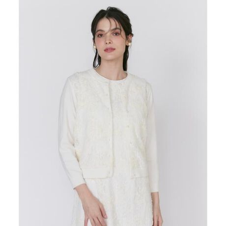 繊細なレースと高級感のある3Dレースの刺繍が織りなすカーディガン。ベースには柔らかな手触りが特徴の繊細な花柄レースを使用。このレースの上に透け感のあるチュールで立体的な花柄を刺繍することで、上品な華やかさをプラスしました。コンパクトなサイズ感が女性らしく、小さめのパールボタンが上品なアクセントに。さらっとした肌触りの素材を使用しており、長く快適にご着用いただけます。同素材のプルオーバーとアンサンブル風の着こなしや、シンプルなTシャツやブラウスと合わせるのはもちろん、ワンピースの上から羽織っていただくのもおすすめです。同素材のワンピース品番:5152121301同素材のプルオーバー品番:5151170312■サンプル撮影商品■こちらの商品はサンプルでの撮影となっております。実際の商品とは、サイズや色味、素材、デザイン等の仕様が若干変更になる場合がございます。