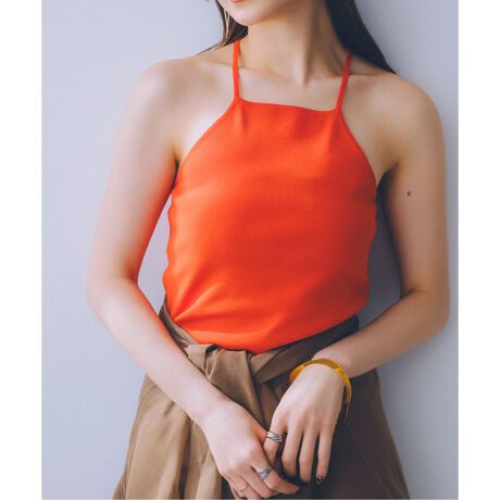 潔いアメスリデザインがポイントのニットキャミソール。
