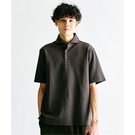 ジャージ シアサッカー素材を使用したカッタウェイカラー型ポロシャツ。