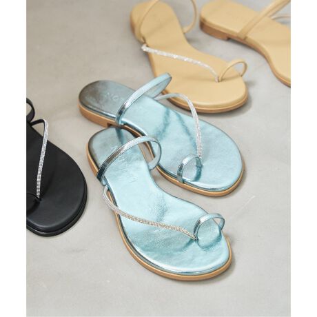 アシンメトリーにかかるビジューストラップが歩くたびにキラキラと輝くトングサンダル。