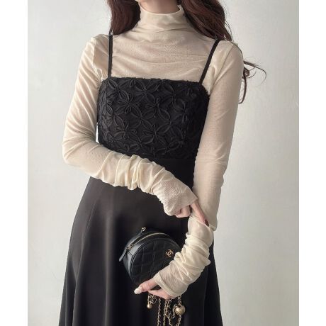 素材:表地: ポリエステル97%, ポリウレタン3%, 裏地: ポリエステル100%, レース: 綿50%, ポリエステル50%<br />