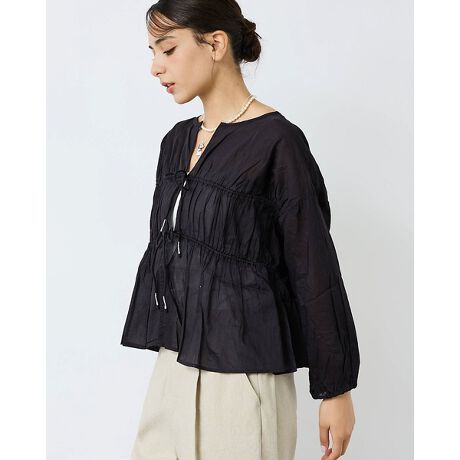 ティアード風にギャザーの入ったブラウス。