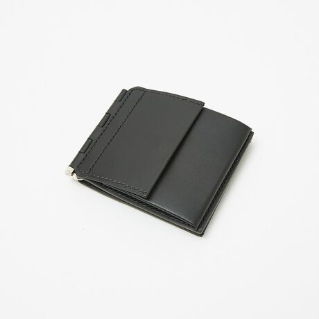 財布中央のの可動部分にドアなどにも使われる蝶番の仕組みを取り入れた、マネークリップ式のミニウォレット。