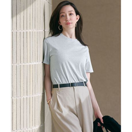 極細番手のラメ糸を使用した上品で煌びやかな素材を使用したTシャツ。ベーシックなデザインとさり気ないラメ感は大人でも取り入れやすく、デイリーなスタイリングにも活躍します。肩回りをすっきりコンパクトなサイジングにすることで、女性らしい華奢な印象を演出。仕様も極力シンプルにすることで、一枚で着るのはもちろん、ジャケットやシャツのインナー、キャミワンピなど、あらゆるコーディネートと好相性です。カラーはシックなブラック(#005)、顔まわりを明るく見せるゴールド(#090)、クールな雰囲気のシルバー(#091)の3色展開です。