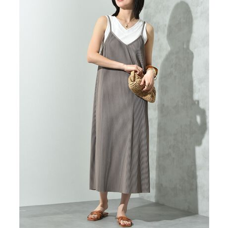 【actuel】カットスムースプリーツキャミワンピース