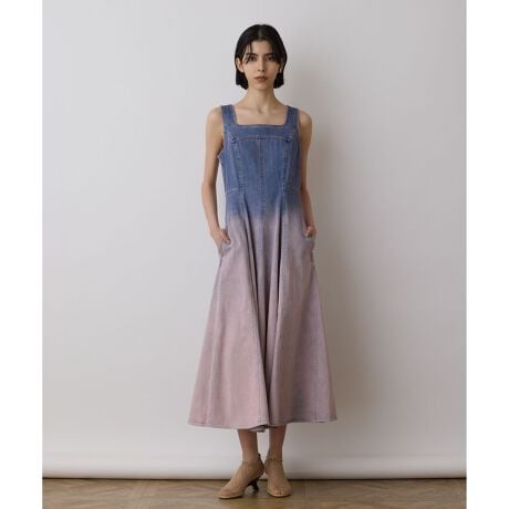 一枚で着て迫力のある、大人っぽいシックなBOHOスタイルを演出するデニムワンピース。8オンスのデニムを使用し、ステッチワークを効かせた切替デザインがポイントです。 上身はコンパクトにスカートはサーキュラー状に用尺をたっぷりと使用し、女性らしいフィット&フレアシルエットに仕上げました。 最大のポイントはカラーによって異なる、高度な加工テクニック。ベージュはブラックデニムをベースに、色を落としたい部分だけを絞ってブラックを落とし、その上にベージュをのせて色味を表現しています。ピンクはインディゴデニムをベースに、グラデーション状に色を落とし、その上にピンクをのせて表現しています。一枚さらっと纏うだけでコーディネートが完成する、夏の主力ワンピースです。
