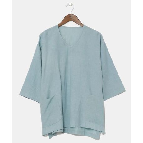 [型番:IKH-5101-2025]ベーシックに使用できる肌触りの良い無地レディーストップス。ポケットが2つ付いていて様々なシーンで大活躍。Vネックがお顔周りをスッキリと魅せます。