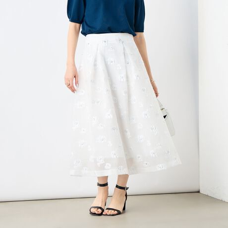 ・ラメ混の大きめフラワー柄が目を引くカットジャガード素材のスカート