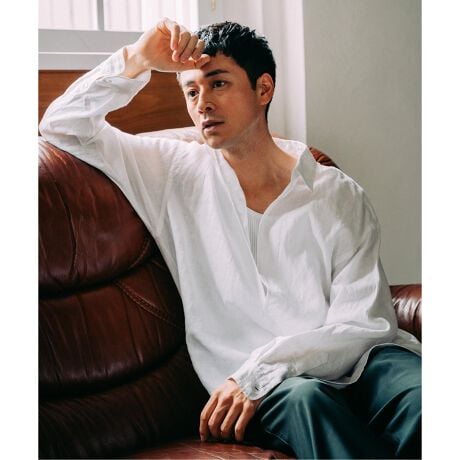 ・しっかりとプレスをあてて艶っぽく着るもよし、あえて洗いざらしでクシャクシャのまま着るもよし、リネンならではの2面性をお楽しみいただけます