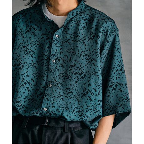 パターンクリスプ ショートスリーブ バンドカラーシャツ