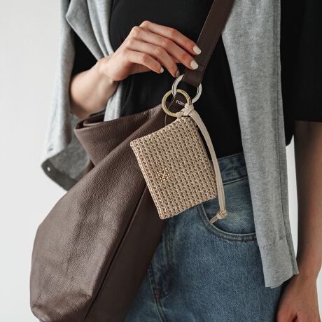 柔らかい素材なので、車のカギやリップ、イヤフォンなどを収納してバッグに付ければポケット代わりに◎