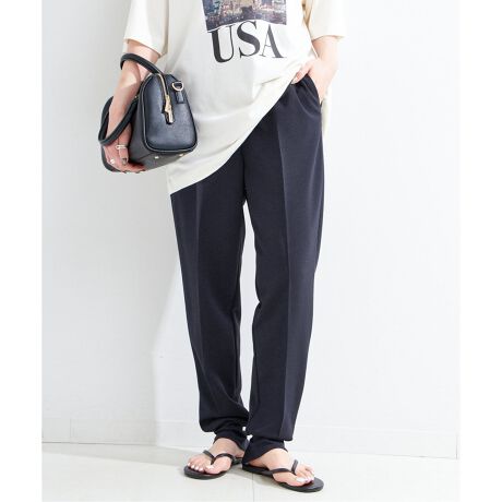 ストレッチ性のあるドライタッチな質感のジョーゼット素材を使用した、デイリーコーデに抜け感を与えてくれる綺麗目ラフなイージーパンツです。