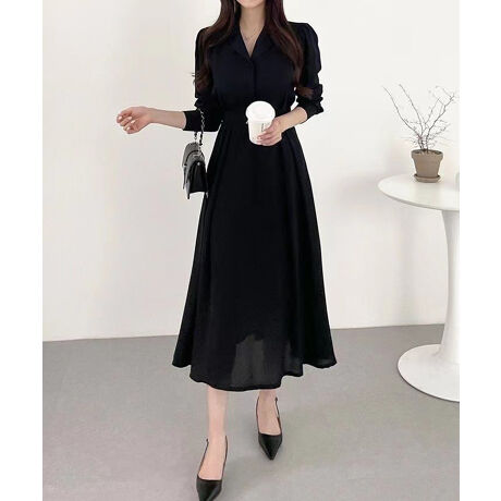 ミモレ丈シャツ襟ワンピース きれいめカジュアル オフィスカジュアル パーティードレス