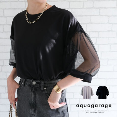 [型番:rw00226]トレンドのチュール素材がフェミニンなカットソー 華やかでかわいいチュールがお出かけムードを引き立て◎ インでもアウトでも様になる大人フェミニンな一着です。