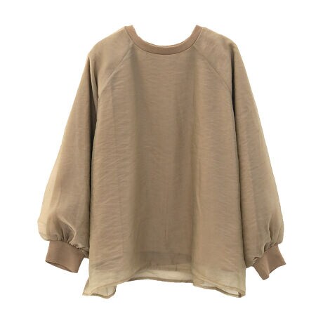 [型番:rw00253]透け感のあるシアー素材のオーガンジーシアー長袖トップスシアー素材にカットソー素材をレイヤードしていますので、インナーを気にせず1枚で着用いただけます。重ね着しているようなデザインで、1枚で主役級のアイテム◎
