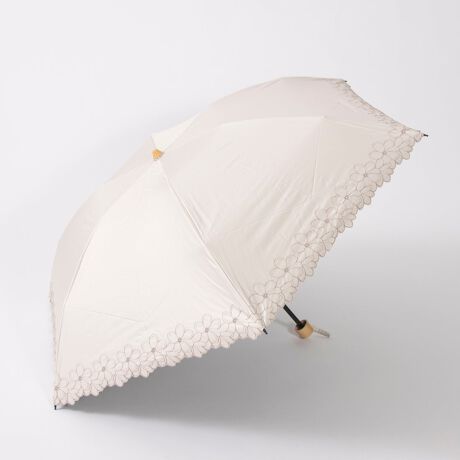 同色の刺繍フラワーがフェミニンな雰囲気の折り畳み傘です。