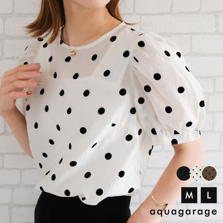 [型番:kw01005]程よく透け感のあるシアー素材を使用したパフスリーブブラウス。 やや大きめのドットデザインで、表情のあるフロッキー生地がモードな雰囲気をプラス。 二の腕をさりげなくカバーするボリューム袖が大人フェミニンな印象に。 着るだけでコーデが華やかになるアイテムです。