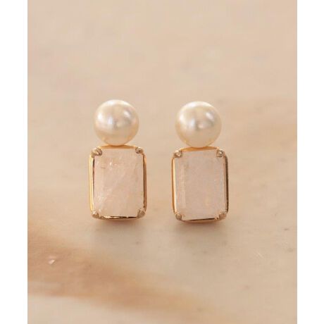 小粒のパールとオクタゴンカットをほどこした天然石を組み合わせたおさまりのいいデザインピアス。