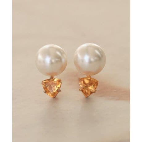 大粒のパールと鮮やかな発色のトリリアントカットの天然石を組み合わせたピアス。