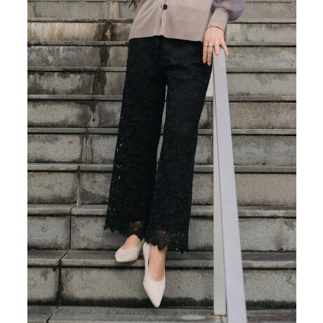 繊細レースで大人の華やぎを。総レースが美しく映えるレースパンツです。立体感のある繊細なレースが、甘すぎず上品な印象を演出。ストレートシルエットなので、きれいめにもカジュアルにも自由自在です。ウエストはゴム仕様で、ラクな履き心地も嬉しいポイント。いつものコーディネートをワンランク上げてくれる、大人の女性にぴったりの一着。