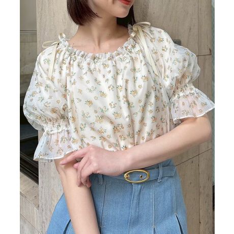 キュートな小花柄が目を惹くシャーリングブラウスがお目見え?