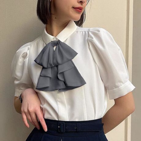 流れるように広がるドレープタイがとびきりクラシカルなブラウスが登場。