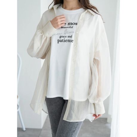 ふんわり柔らかな生地感とシルエットがフェミニンさを演出するシアーシャツ
