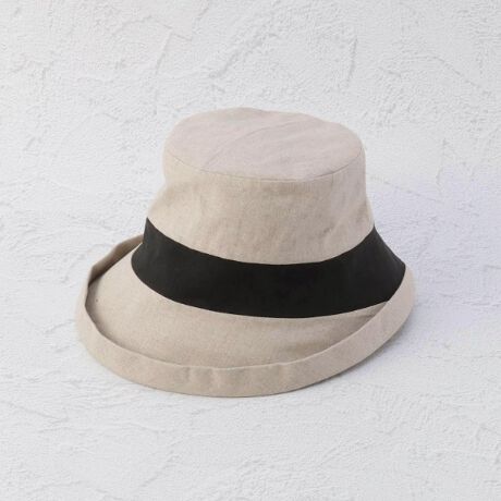 後ろの面ファスナーでサイズ調整可能。本体のリネン100%の風合いがナチュラル感増しのエッジアップブルトンハット。ツバの樹脂ワイヤーで自在に形をアレンジ可能。