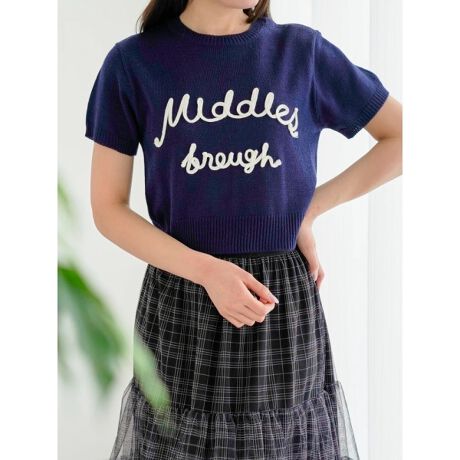 立体的なロゴデザインがアイキャッチーなニットプルオーバー