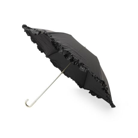 フリルのデザインにゴールドの持ち手が上品な晴雨兼用折り畳み傘。