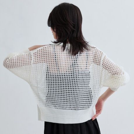 透かし編みのデザインがまさに軽やかなニットカーディガン。