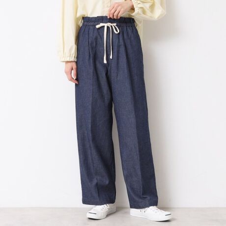 綿と麻の素材で仕立てたリラックス感のあるデニム調パンツです。