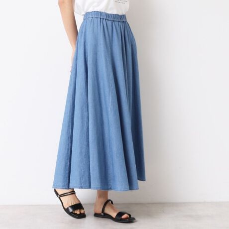 ウエストゴムで裾に向かって切り替えたシルエットが好評な1枚です。