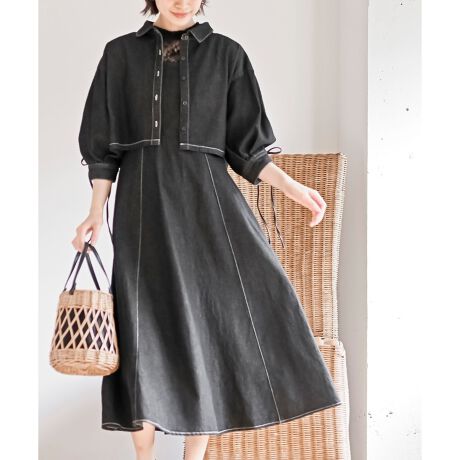 アウターとインナーワンピースの日常使いもしやすいデニムアイテムです。