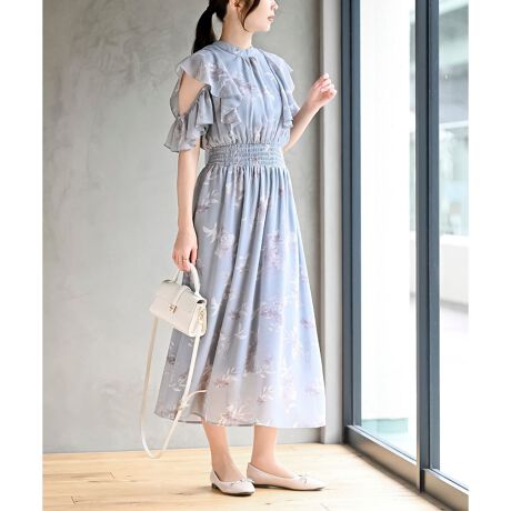 ラッフルスリーブ花柄ワンピース