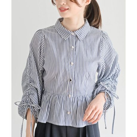 リボンでクシュっとさせられるドロストスリーブのブラウス。