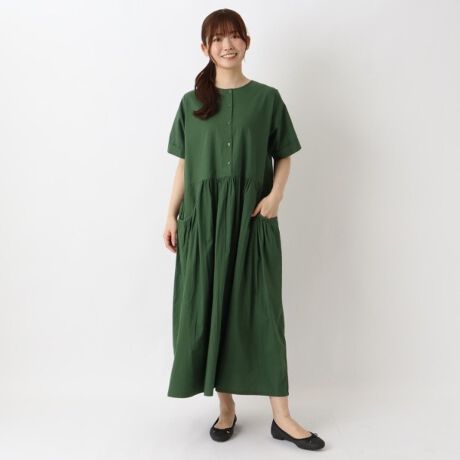 ギャザー切替を利用したポケットがポイントのワンピースです。