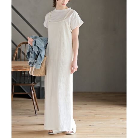 すとんとした落ち感のあるタイトなシルエットのキャミワンピース。