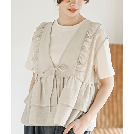 麻調シアーフリルベスト